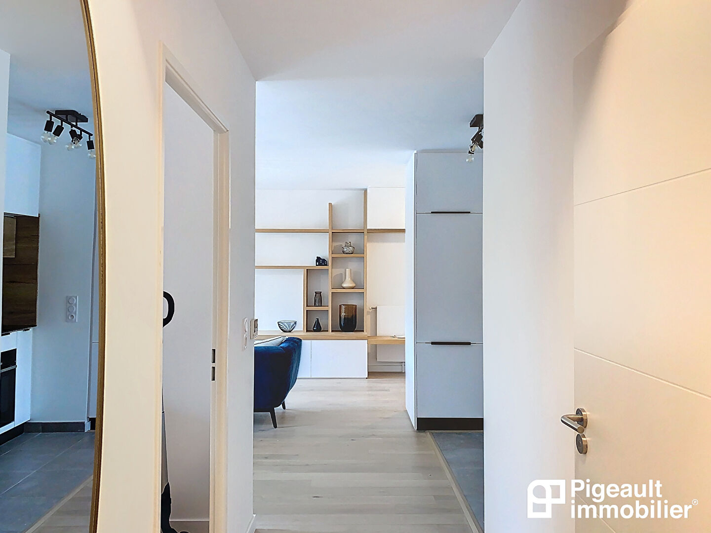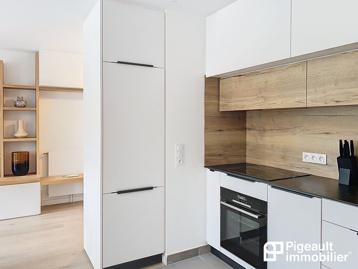 L’ensemble de l’appartement a été entièrement aménagé par un agenceur avec des meubles réalisés sur mesure.