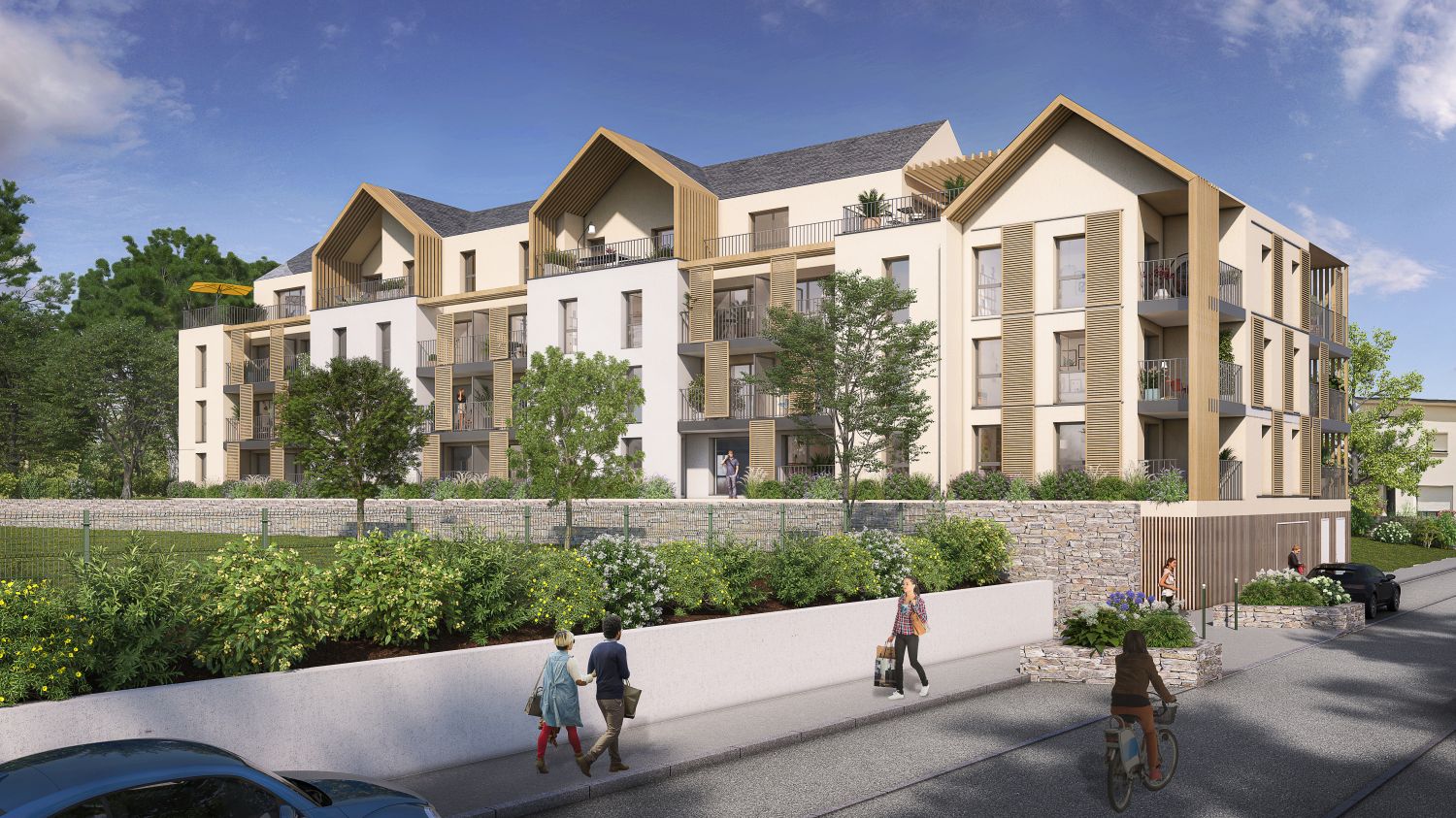 Conçu par l’architecte Paul BOUET, ce projet harmonise des lignes contemporaines avec l’utilisation de matériaux naturels. Les espaces paysagers sont parfaitement intégrés à l’environnement, offrant cette empreinte naturelle tant recherchée. La façade exposée ouest est rythmée par un bardage à claire-voie et des persiennes en bois. Son positionnement décalé par rapport à la petite rue des écoles assure à la fois votre intimité et une vue dégagée.